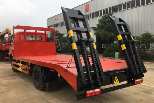 上裝配置:平板底板橫梁采用100*100*5mm方管,底板采用5mm或8mm花紋板,帶加密斜支撐,爬梯采用雙彈簧加強型設計,采用三道筋+雙彈簧加固焊接,可選裝液壓爬梯或折疊加長型液壓爬梯,斜坡處帶后支腿,平板有效板長5.4米(含斜坡),板寬2.31米(可選裝帶左右加寬伸展),可以選擇貨箱帶欄板設計,12噸及12噸以下噸位挖機首選車型!